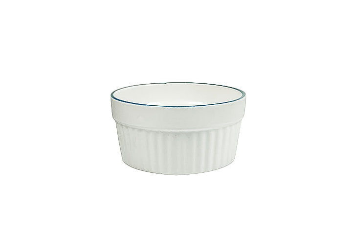 Add style to the dining experience with our white porcelain Ramekin with Blue Rim – the perfect addition to any event and table setting. Crafted for both function and aesthetics, these versatile ramekins are designed to meet the high standards of restaurants, cafes, and catering businesses. Whether serving soufflés, dips, sauces, or desserts, these ramekins combine durability with classic elegance.